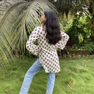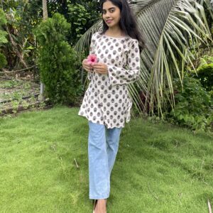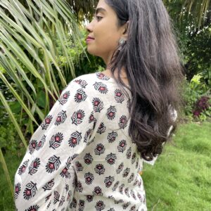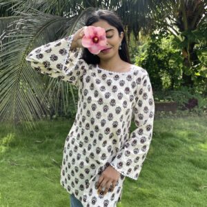 Be the first to review “Cream color kurti with all-over prints and bell sleeves, casual and trendy”